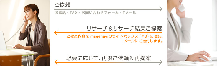 お任せください!専門のリサーチャーが、あなたに代わってお探しのイメージをみつけます。