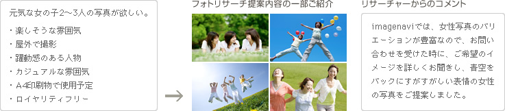 欲しいイメージを探してほしい!そんなときには、ぜひimagenaviのフォトリサーチサービスをご利用ください。